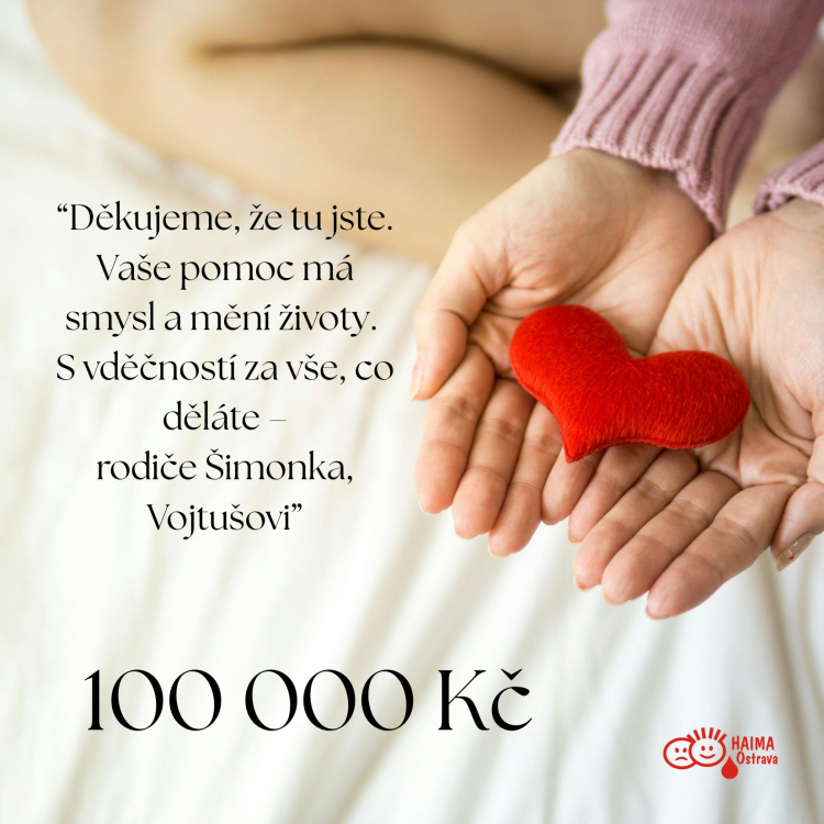 „Děkujeme, že tu jste. Vaše pomoc má smysl a mění životy. S vděčností za vše, co děláte – rodiče Šimonka, Vojtušovi"
